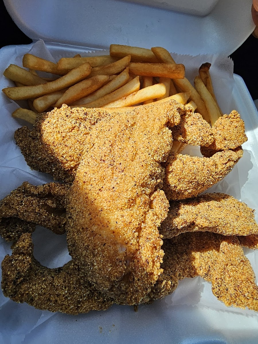 I haven’t had fried catfish in years and decided to come here basically because the reviews are pretty good. I have to admit this was some of the best fried catfish I’ve had in a long time. I like that on the shelving, you see the actual ingredients of the breading they use and some of the spices. It was very, very good. I’ll go back over and over again to this place for the fried catfish. The gal work in the counter was very professional friendly.
